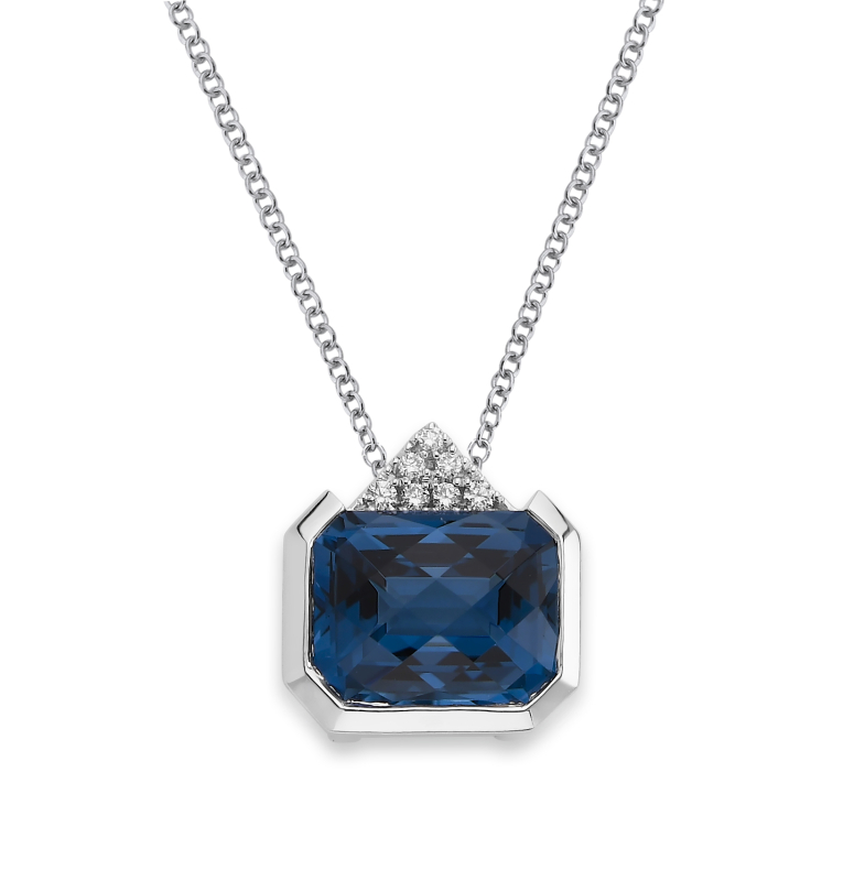 Pendant set with 0.06 carat T.W. round diamonds and 4.35 carat London Blue Topaz in 14k White gold.