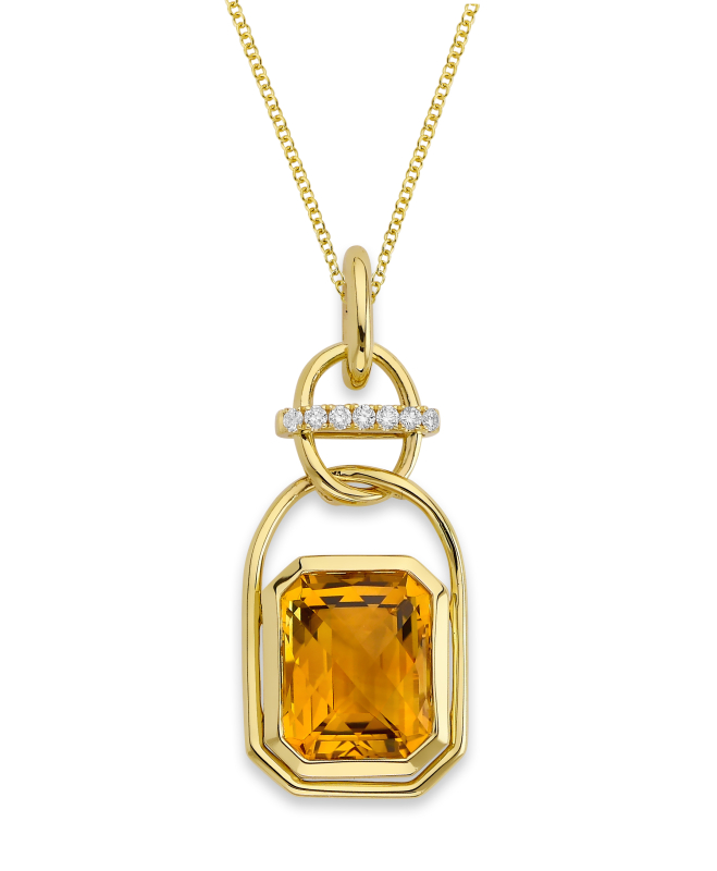 Pendant set with 0.06 carats T.W. round diamonds and 3.60 carat Citrine in 14k Yellow gold.