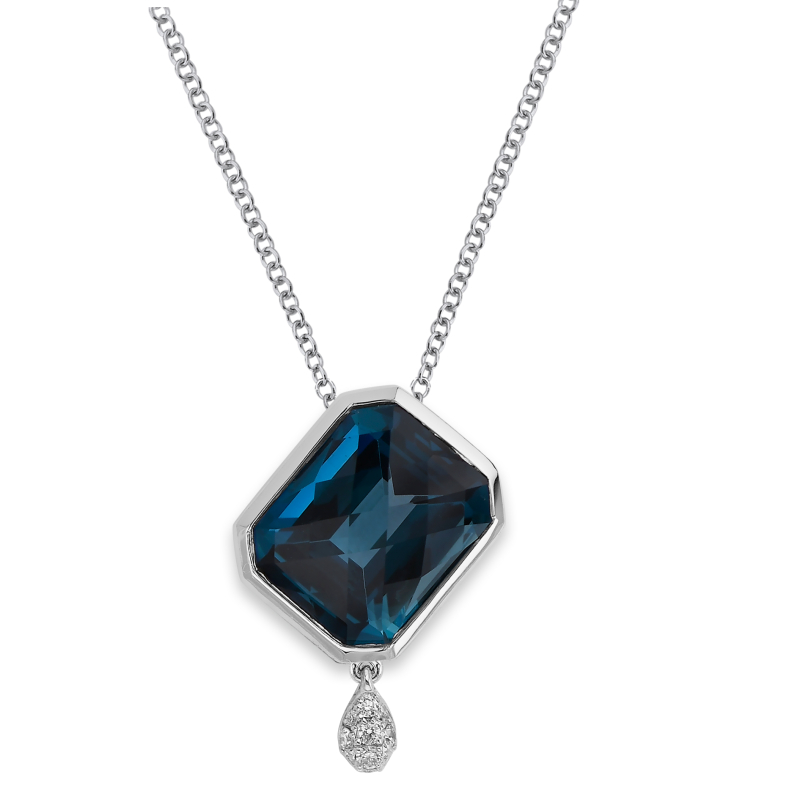 Pendant set with 0.07 carats T.W. round diamonds and 6.10 carat London Blue Topaz in 14k White gold.