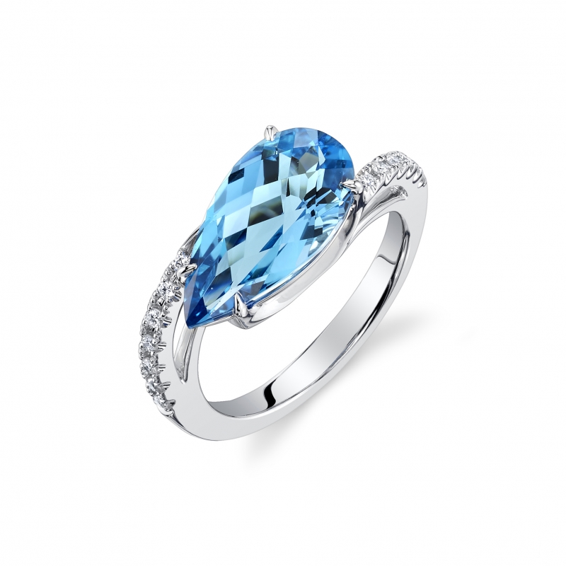 Ring set with 0.13 carat TW round diamonds and 4.46 carat Blue Topaz in 14k White gold.