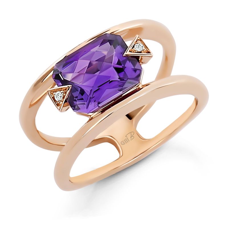 Ring set with 0.02 carats T.W. round diamonds and 2.25 carat Amethyst in 14k Rose gold.